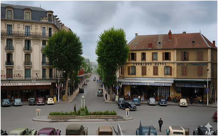 La place de la Gare est un espace stratégique de Vichy : porte d’entrée de la ville thermale, interface entre les flux de curistes, de travailleurs, de réfugiés, puis de touristes. Entre 1940 et 1970, elle connaît trois grandes phases de transformation, liées aux bouleversements politiques, sociaux et urbains.